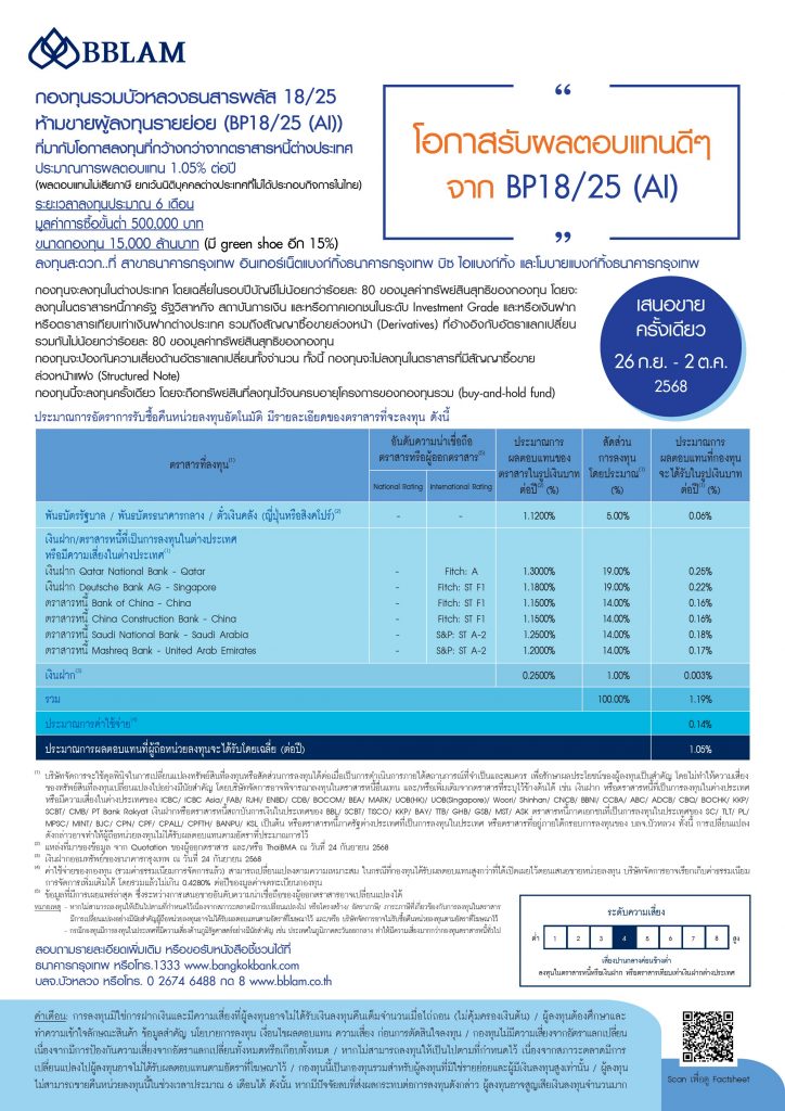 BBLAM เสนอขาย IPO ‘BP18/25(AI)’ วันที่ 26 ก.ย. – 2 ต.ค. 2568